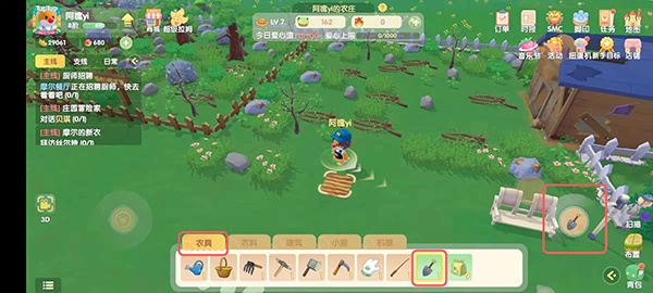 4.如果需要继续开垦土地,可以选择农具中的【铁耙子】进行开垦。