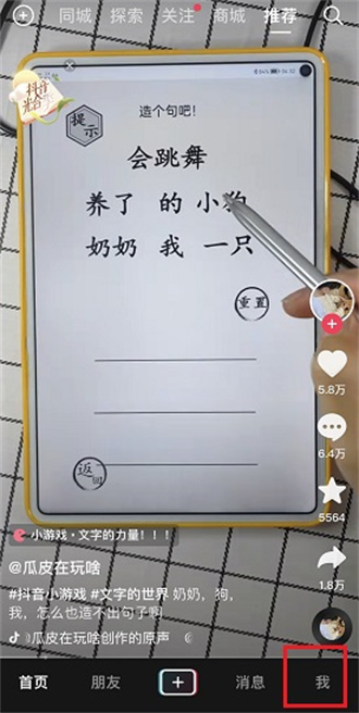 1、找到抖音页面下方的【我】,点击进入【个人中心】。