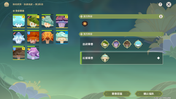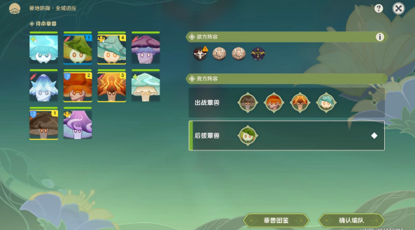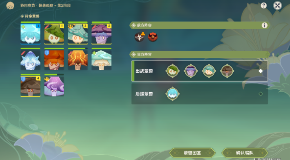 我方阵容-出站蕈兽(1-4-2-3-1),确认编队