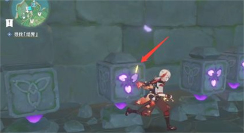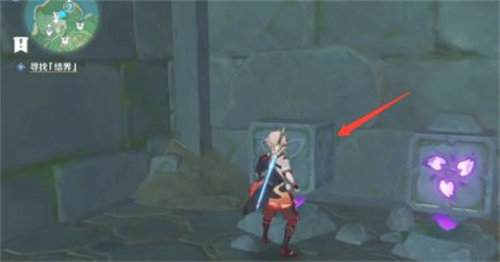 4.然后在来到左边的第一个石块,击打两次点亮石块纹路;