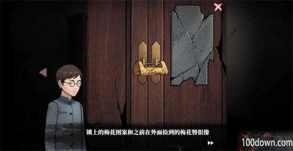 1、首先点击门上的锁来调查,然后可以拿开【符纸】开锁进门;