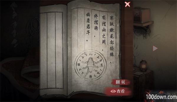 9、根据【纸片】上被光照亮的符号打开衣柜里的盒子,拿走【寒铁蝎】。