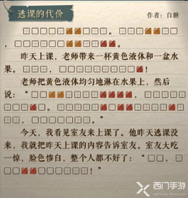 在海龟蘑菇汤游戏中会有很多的关卡,其中在逃课的代价关卡中,主角是一个学美术的学生,故事就是在上课的发生的,那么这个关卡怎么过呢,接下来小编为大家带来了详细介绍,希望可以帮助到大家。
