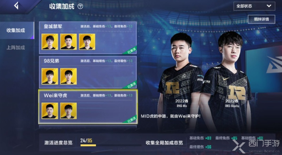 玩家可以随意搭配五个选手,但由于选手之间存在羁绊加成和战队加成,这些因素会影响到阵容的最终战力,建议大家尽量选择相同队伍的选手组队,比如V5中野组合、TES水手组合,或者像我这样直接打造完全体RNG。