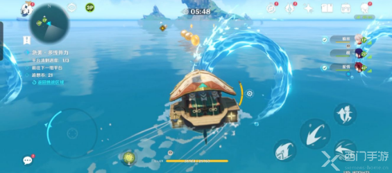 4、在打完怪的同时,不要忘记利用风场拿追想币哦!打完怪以后,回到自己的浪船上!注意!一定要自己的,如果你先手抢别人的话船会爆炸;
