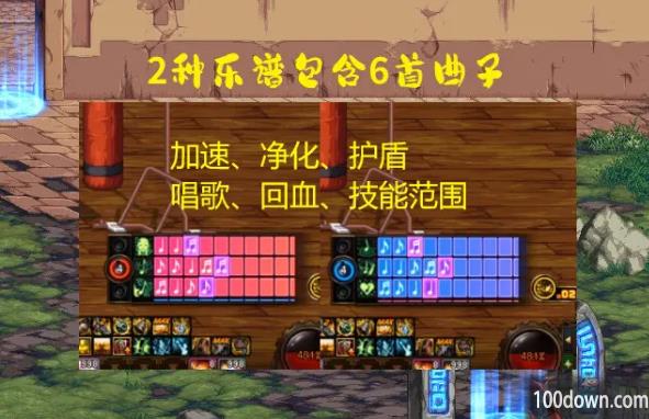 弹奏乐谱可获得的6种被动效果包括:加速、净化、护盾、唱歌、回血、以及增加技能范围。