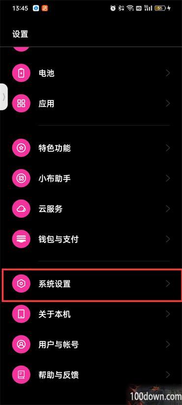 1.首先打开手机里面的设置软件,进入到设置的页面中往上滑动找到【系统设置】点击;