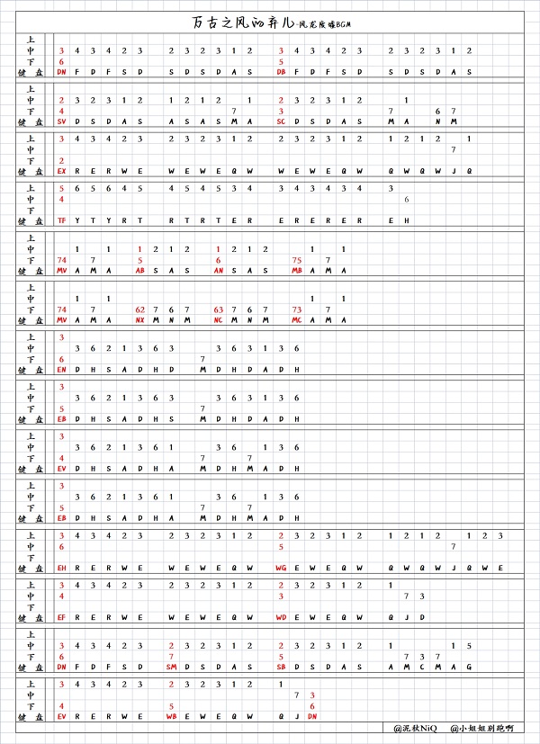 文字版琴谱