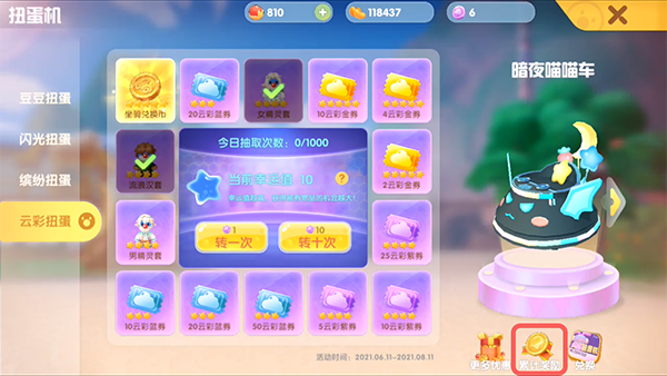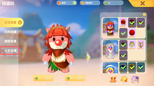 2.然后在左侧标签中切换到【云彩扭蛋】;