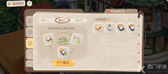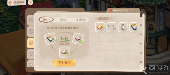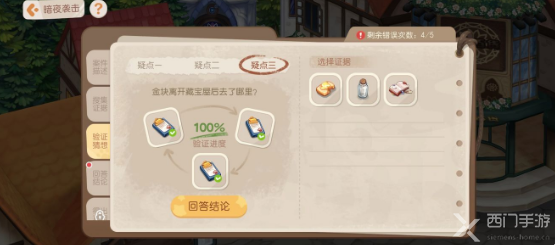 疑点一:夜西的证词、藏宝屋值班日记、温蒂的笔录。