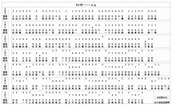 原神幻听琴谱-原神幻听手机版电脑版琴谱分享