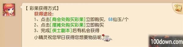 1、在商会处可以购买彩果,消耗六十八仙玉可购买一个。