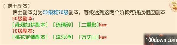 2、70级副本:桃花定情副本、流沙净、万丈山。