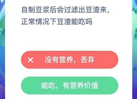 自制豆浆后会过滤出豆渣来,正常情况下豆渣能吃吗-12月19日蚂蚁庄园答案