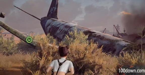 4、在飞机残骸这里,飞机残骸的机翼上有个沙堆挖开就能看到汽油。