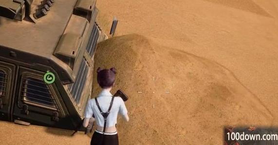 2、在下图这辆车车前面的一个沙堆里面,玩家要要挖开里面可以看到汽油。