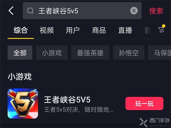 1、登录抖音,在抖音搜索页面里搜索【王者峡谷5V5】。