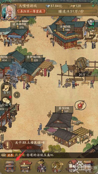 1.打开并登录叫我大掌柜游戏,点击进入【府邸】;