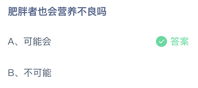 肥胖者也会营养不良吗?这是今日的蚂蚁庄园小课堂的问题,很多玩家都比较关注这个话题,接下来就让小编为大家详细介绍一下,希望可以帮助到大家。
