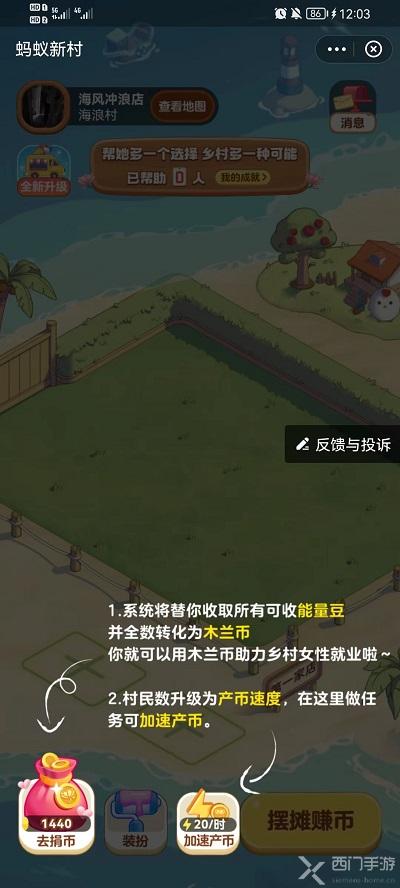 1、蚂蚁新村更新完成之后,助力其中的乡村女性就业培训,就可以获得解锁海浪村的机会;