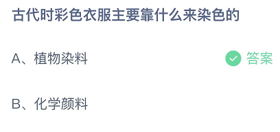 古代时彩色衣服主要靠什么来染色的-蚂蚁庄园12月29日答案