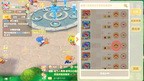 ②在好友列表中,找到拥有金鱼特产的好友,点击【家园】;