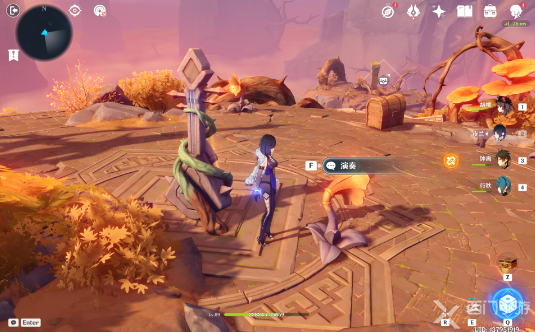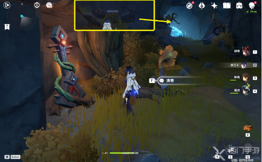 3、再次奏响「音律树琴」,召唤风场往后,击败怪物获得珍贵的宝箱(宝箱3);