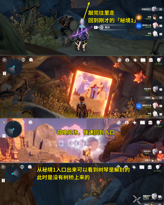完成上述三个秘境之后,下面就是这个秘境最绕人的地方了!大家搞不懂的话可以参考楼主的示意图,先认清各个秘境的出入口位置....