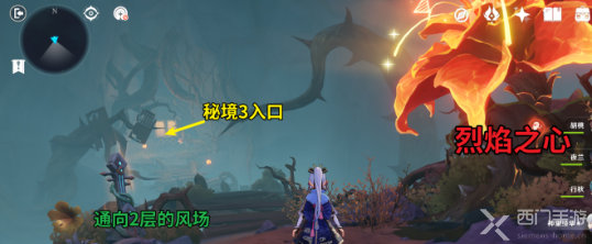 先来到和冰封之心房间在同一层的的小秘境,把这个门认定为秘境1的入口。