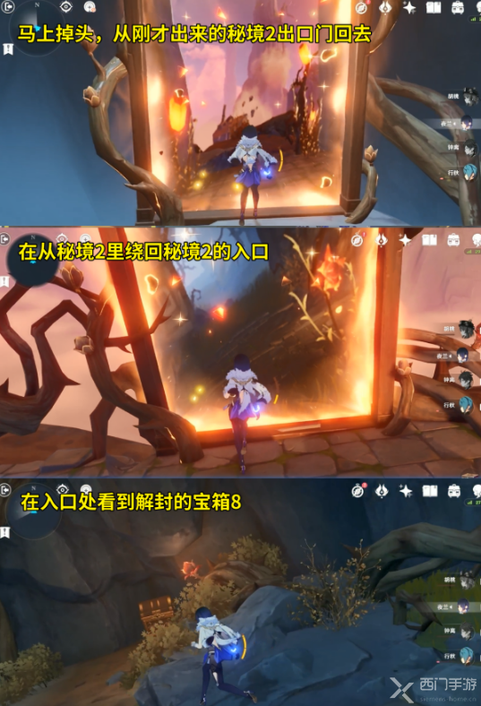 现在马上掉头,从秘境2的出口走回秘境2的入口,在入口处就能找到动画中解封的宝箱8。