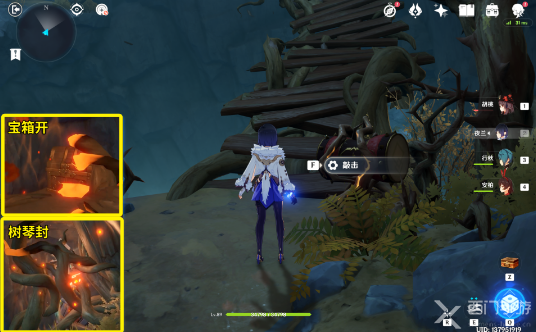 (2)秘境1出口的树鼓B可以让树桥通向秘境2的入口,但会让秘境2入口处的宝箱被封印。