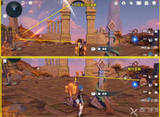 11、离开秘境,解开音律花谜题,解锁一个精致的宝箱(宝箱12),从宝箱里开出「余音之匙」;
