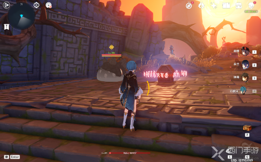 5、进入秘境2后往左侧一路走,看到岩史莱姆和一个精致的宝箱(宝箱5)。后面有一个限时挑战,完成挑战能拿到一个精致的宝箱(宝箱6);