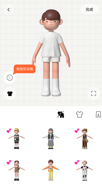 5、选择后进入装扮选择界面,在这里可以自由搭配不同的装扮,还有套装装扮可以选择,点击脸型按钮还可以自定义捏脸;