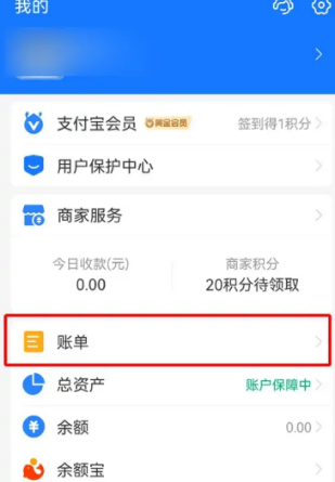 1、玩家进入自己的支付宝app中,点击右下角的【我的】,然后选择【账单】;