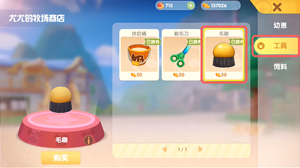 2.选择【尤尤的牧场商店】打开购买牧场相关资源;