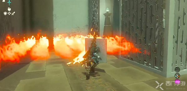 步骤四:左侧有另一个魔像,击败后会掉落一个石板,此时玩家将盾牌上的火龙头拆掉,然后装上石板。