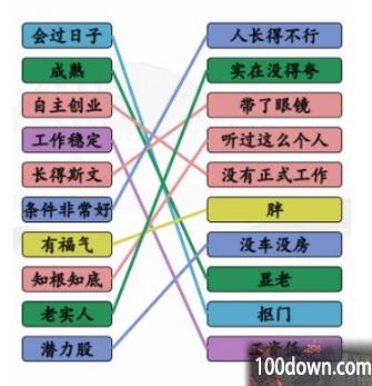 玩家进入之后可以看到有很多的文字,要将两边的文字成功连接正确才可以,有很多的不同的意思。