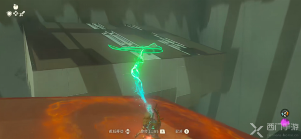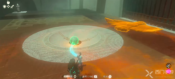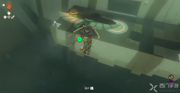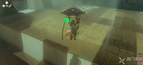 3、将滑翔翼滑下去,将石球放在坑中即可打开下一道大门。