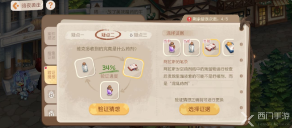 疑点二:空的药剂瓶、阿拉斯的笔录、一个紫色的瓶子(忘了截图,应该是叫混乱药剂,反正紫色瓶子就那一个)