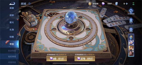 抽取次数:这个夺宝活动玩家们可以一直抽取,不会像荣耀水晶一样每天有次数限制,玩家们在游戏里面可以一直抽取;
