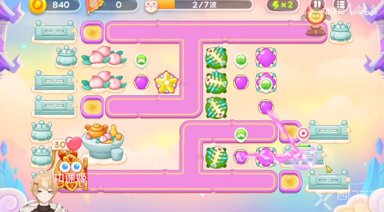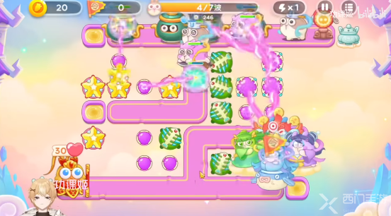 4、之后几波会有仙女兔,还有那个罐子里的兔子,玩家要小心,在起点处可以放毒针,中间的魔法球尽量都飞升满级,神仙不是太难,全程可以锁头。
