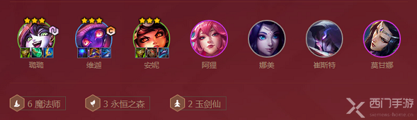 阵容羁绊:3永恒之森6魔法师2玉剑仙