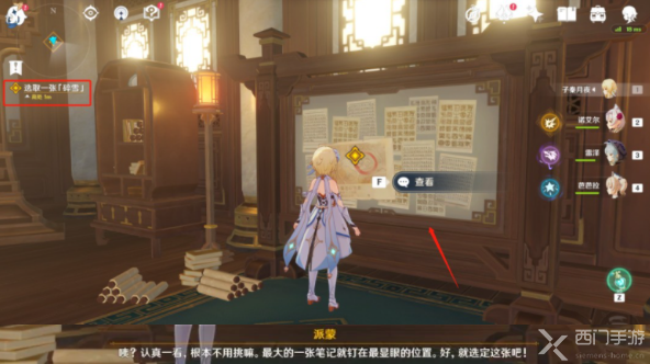 11、之后玩家需要在墙上挑选一张最大的纸片(最大的纸片上有个红圈圈出来了一个地方,派蒙猜测是宝藏所在的位置);
