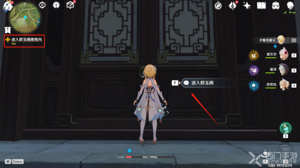 7、继续任务追踪指引,找到引路人步云,与步云对话后就可以到达【群玉阁】了;