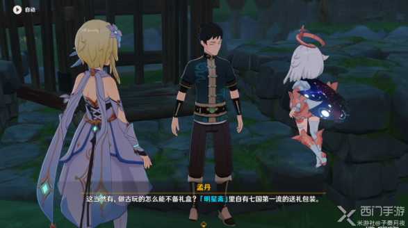 8、并且还和凝光自动开启了对话(对话中派蒙把礼盒给凝光做见面礼);