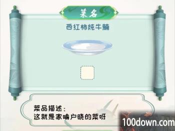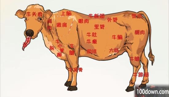 我们需要根据每个菜名和菜品描述,将正确的位置拖动到菜盘上即可,分别是:牛腩、里脊、牛窝骨、腿肉、肋排、牛肚、牛心管、牛板筋、牛蹄筋。