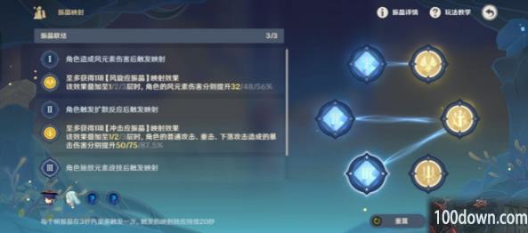 地脉异常:角色对敌人触发扩散反应后,队伍中所有角色造成风元素伤害的暴击率提升35%,持*6*。