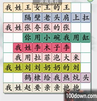 每个人都拥有自己的姓氏,但是每个人的姓氏都不一样,玩家要想通过此关要了解一下都有都有哪些百家姓,由百家姓组成的句子都是答案。
