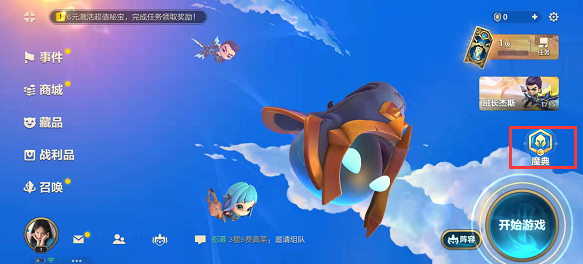 2、玩家需要完成魔典任务才可以获得爆爆,在游戏主界面的右侧就可以找到【魔典】;